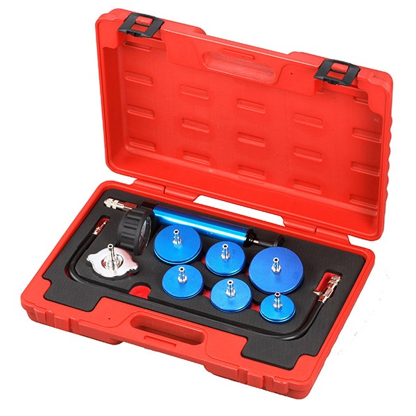 Набор торговой марки Мастак используется в промышленности, автосервисах и на станциях ТО для проверки системы охлаждения мобильных устройств, сельскохозяйственной техники, двигателей тяжелых грузовиков и прочего. Состоит из насоса с манометром, адаптеров, гибкого шланга и пластикового кейса для защиты от механических повреждений и удобного хранения.