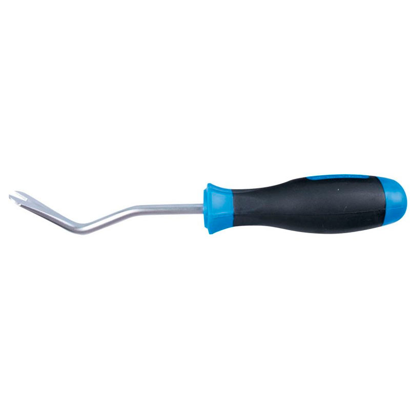 Съемник торговой марки King Tony изготовлен из высокопрочного металла, устойчивого к деформациям. Стержень имеет изогнутую форму. Эргономичная рукоятка надежно лежит в руке. Основное назначение приспособления – демонтаж обшивки салона различных автомобилей.