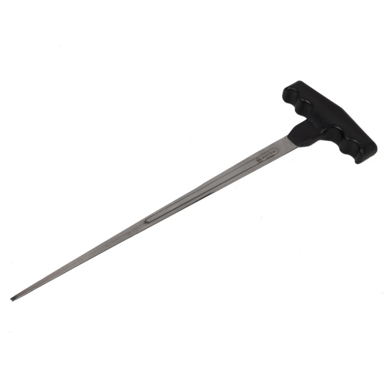 Функциональное шило от известной компании должно быть в каждом автосервисе. Инструмент т-образной формы применяется при демонтаже стекол авто. С помощью модели МАСТАК мастер без труда справится с заправкой струны для удаления ненужного уплотнителя. Жало из стали прочное и не сломается во время интенсивной работы. эргономичная рукоять удобна для удерживания благодаря выемкам для пальцев.