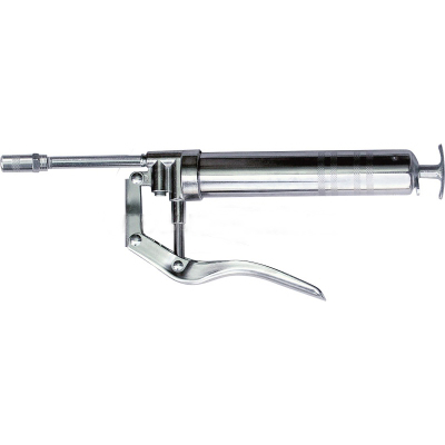 Изделие рычажно-плунжерного типа (объём картриджа 120 мл) предназначается для точечной смазки различных механизмов, узлов агрегатов и технических устройств литолом, солидолом и другими типами смазочных материалов. Конфигурация предусматривает прямую и угловую фиксацию насадки, в комплект входит гибкий шланг из резины (305 мм) с металлическими наконечниками, позволяющий осуществлять обработку в условиях тесного пространства.
