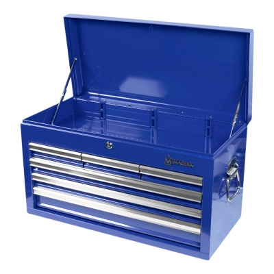 Инструментальный ящик МАСТАК с шестью выдвижными ящиками разного размера и одним общим отсеком, предназначен для компактного хранения и удобного ношения необходимого набора инструментов, деталей, крепежей и оснастки (имеются боковые держатели). Используется для работы вне производственных объектов, (выездных слесарных и монтажных работ), а так же для организации рабочего пространства в производственных помещениях, на СТО, в автомастерских, сервисных центрах и гаражах.