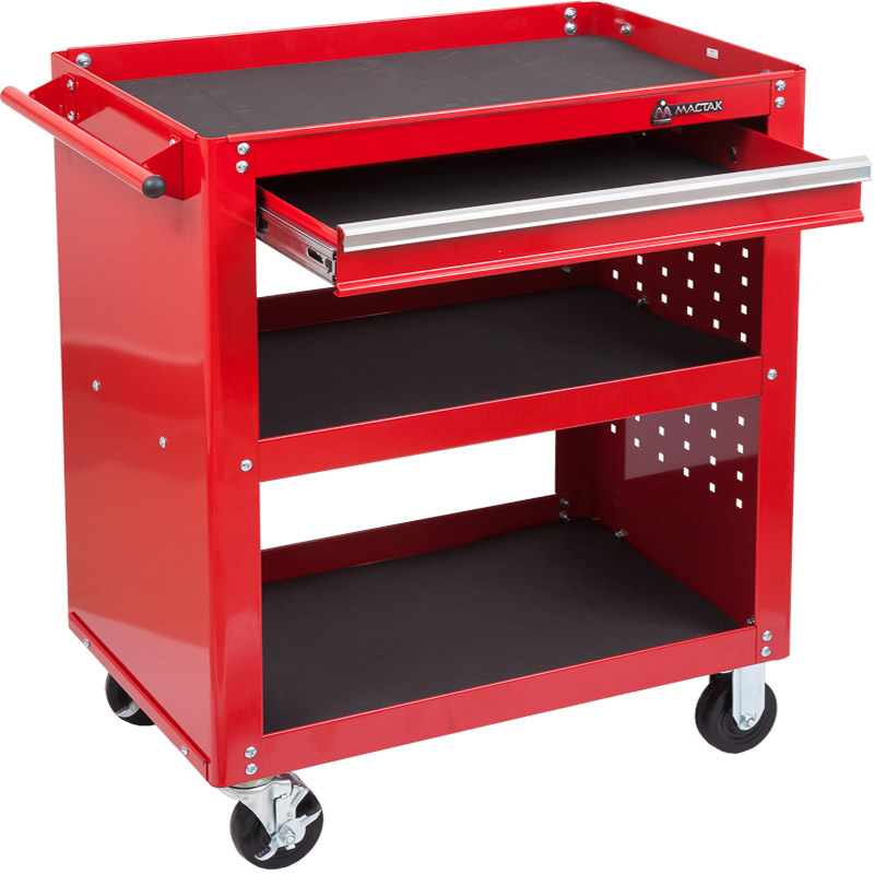 Открытая инструментальная тележка Мастак (3 полки и ящик, красная)