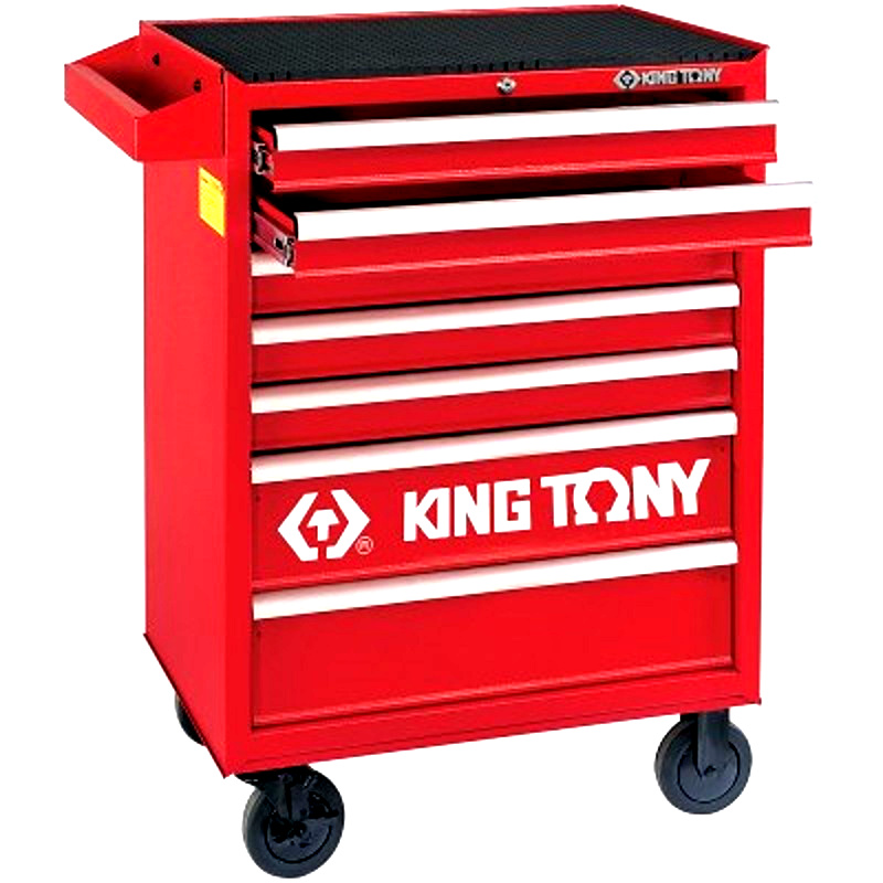 Инструментальная тележка, изготовленная производителем King Tony, является гарантом экономии пространства в гараже или мастерской. Модель с ящиками и отсеков позволяет расположить как мелкий, так и крупногабаритный инструмент. Колесики, одна пара из которых поворотная, помогут в перемещении. Центральный замок блокирует одновременно все отсеки, защищая инструменты от негативного воздействия.