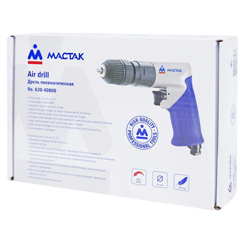 Дрель пневматическая МАСТАК 13 мм, 800 об/мин, реверс
