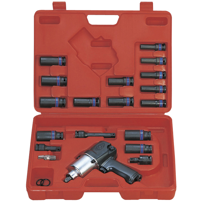 Гайковерт пневматический ударный 1/2″, крутящий момент 678 Нм (с комплектом ударных головок, 22 предмета)