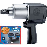 Гайковерт пневматический ударный 3/4″, 1085 Нм, удлиненный, в комплекте 3 торцевые головки
