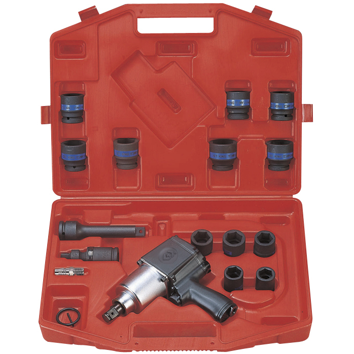 Пневматический ударный гайковерт 3/4″, крутящий момент 1085 Нм (комплект ударных головок, 18 предметов)