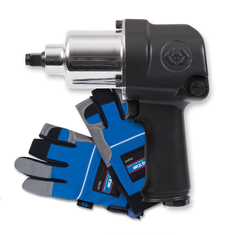 Гайковерт пневматический ударный King Tony 1/2, 881 Нм, в комплекте перчатки антивибрационные