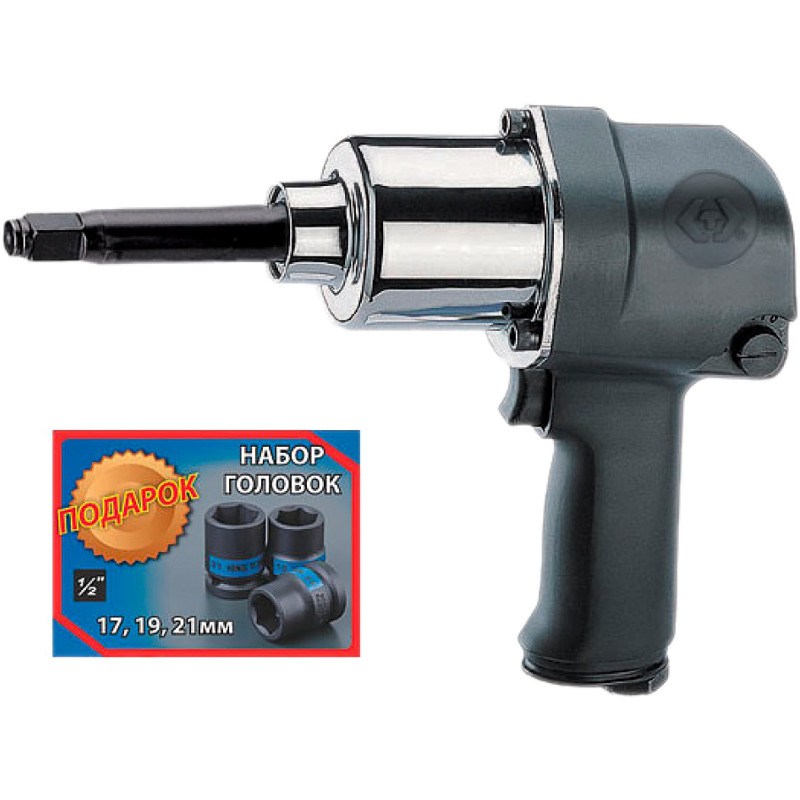 Пневматический ударный гайковерт 1/2″, крутящий момент 881 Нм (удлиненный, 3 торцевые головки)