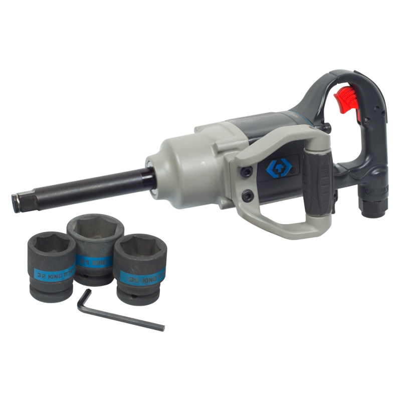 Гайковерт пневматический ударный King Tony 3/4, 2170 Нм, удлиненный, в комплекте 3 торцевые головки