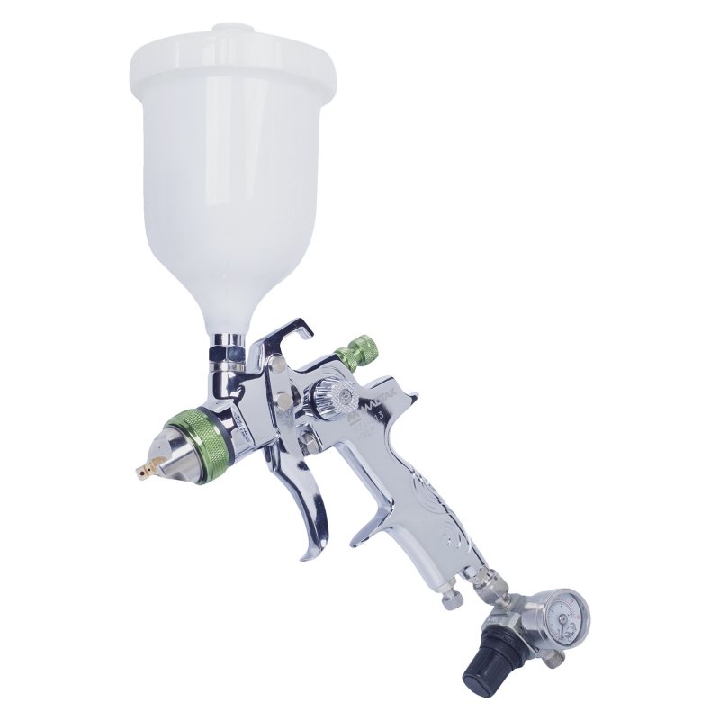 Краскопульт известного бренда Мастак используется в автосервисах и мастерских для нанесения базовых покрытий без завихрений и опылов. Обеспечивает экономное расходование лакокрасочных материалов. Запирающая игла и дюза не подвержены износу и коррозии. Предусмотрена возможность регулировки подачи воздуха и распыляемого средства. Для комфортного хранения инструмент укомплектован пластиковым кейсом.