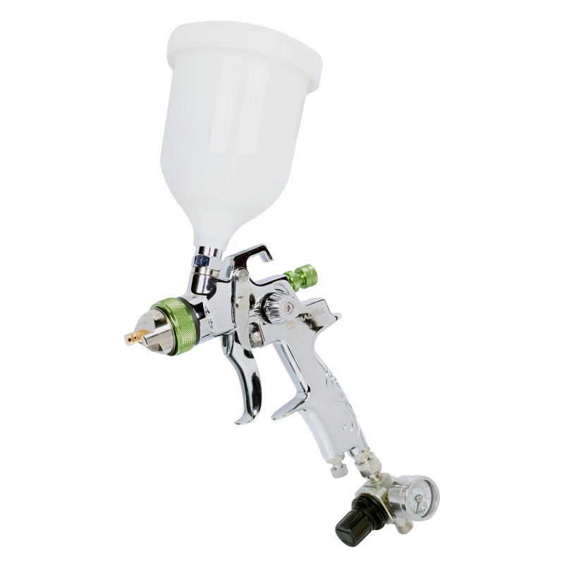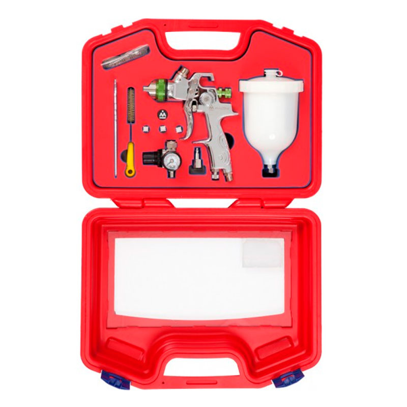 Краскопульт системы High Volume, Low Pressure от известного производителя Мастак обеспечивает экономное нанесение лакокрасочных материалов без завихрений и опыла. Основное назначение – нанесение базовых покрытий. Широко применяется в автосервисах и мастерских. Инструмент оснащен регуляторами формы факела, подачи воздуха и ЛКМ. Укомплектован удобным пластиковым кейсом.
