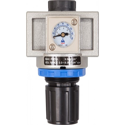 Манометр регулятор для соединений размером 1/2 дюйма. Предназначен для регулирования давления выходного сжатого воздуха. Соединяет пневматическое оборудование со шлангом. Изготовлен из высокопрочного материала. Возможно применение в автомобильных и ремонтных мастерских.
