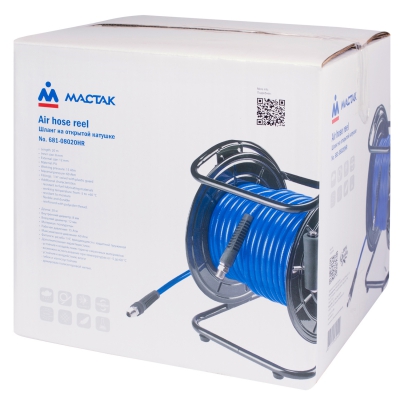 Полиуретановый шланг на открытой катушке МАСТАК (длина 20 м, толщина 12 мм) оборудован вращающимися наконечниками с внутренней резьбой 1/4″ для подключения пневматического инструмента и оборудования (дрель, гайковёрт, отбойный молоток, распылитель). Предназначается для подачи потоков сжатого воздуха от компрессора к рабочему месту. Универсальная компактная переносная конструкция в виде катушки на стальной раме позволяет удобно хранить и использовать шланг.