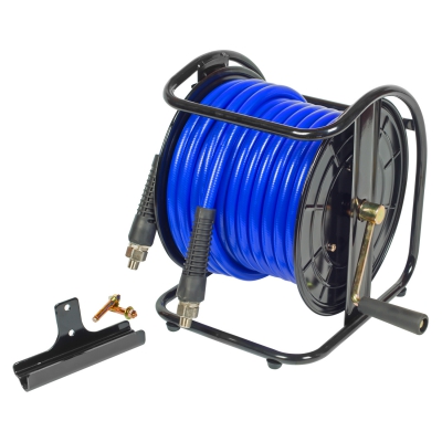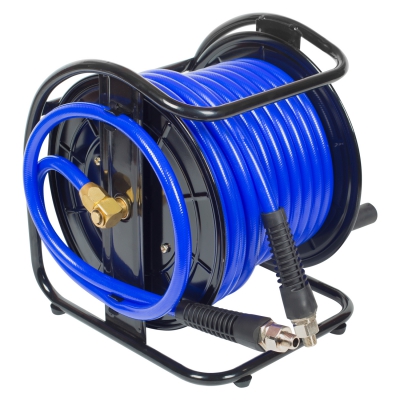 - Фитинги с внутренней резьбой и защитной пружиной, катушка с рукояткой для возврата шланга.