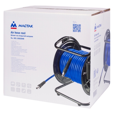 Полиуретановый шланг на открытой катушке МАСТАК длиной 20 м снабжён вращающимися наконечниками с внутренней резьбой 1/4″ для подключения пневматического инструмента и оборудования (дрель, гайковёрт, отбойный молоток, распылитель). Предназначается для подачи потоков сжатого воздуха от компрессора к рабочему месту. Универсальная компактная переносная конструкция в виде катушки на стальной раме обеспечивает удобное хранение и эксплуатацию изделия.