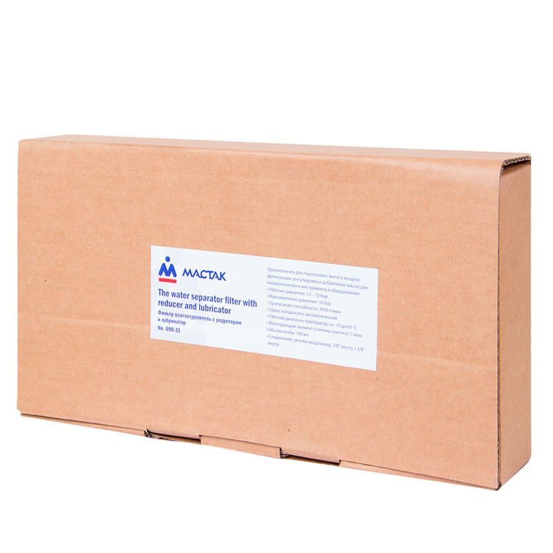Фильтр влагоотделитель известного бренда Мастак применяется для очистки сжатого воздуха от масла, воды и твердых частиц. Используется совместно с пневматическими инструментами и оборудованием. Специальный вентиль позволяет регулировать давление, которое можно контролировать при помощи встроенного манометра. Лубрикатор преобразовывает масло в масляный туман. Устройство не заменимо на станциях ТО и в автосервисах.