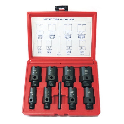 Набор для восстановления резьбы штуцеров. Используется при ремонтных работах системы кондиционирования автомобилей. Позволяет реставрировать испорченные резьбовые соединения. В составе необходимые инструменты повышенной прочности. Применяется в мастерских и на СТО.