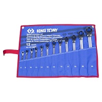 Набор комбинированных трещоточных ключей King Tony, 8-24 мм, чехол из теторона, 12 предметов