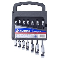 Набор комбинированных трещоточных ключей МАСТАК, 8-19 мм, 7 предметов