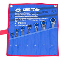 Набор комбинированных трещоточных ключей King Tony, 8-19 мм, чехол из теторона, 7 предметов