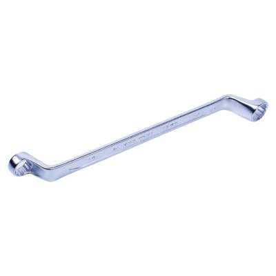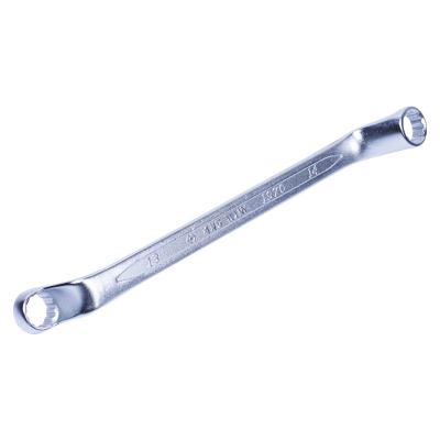 Гаечный ключ с накидными захватами. Предназначен для работы с различными резьбовыми креплениями. Материал изготовления - хром-ванадиевая сталь. Инструмент наделен повышенными физическими свойствами. Применяется в быту или на СТО.