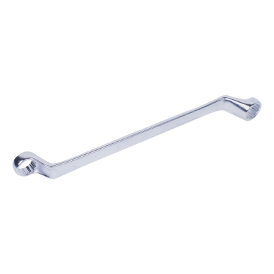 Двенадцатигранный ключ с накидными захватами. Изогнут под углом 75 градусов. Помогает достичь труднодоступных углубленных деталей. Изготовление из хром-ванадиевого сплава наделяет изделие повышенной прочностью. Выдержит тяжелые нагрузки в профессиональных условиях мастерских.