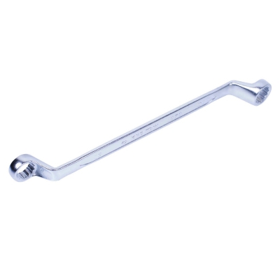 Гаечный ключ с двенадцатигранными накидными захватами. Выдерживает повышенные нагрузки при работе с затрудненными резьбовыми соединениями. Изогнутые зева для работы с креплениями в труднодоступных местах. Применяется в автосервисах или в быту.