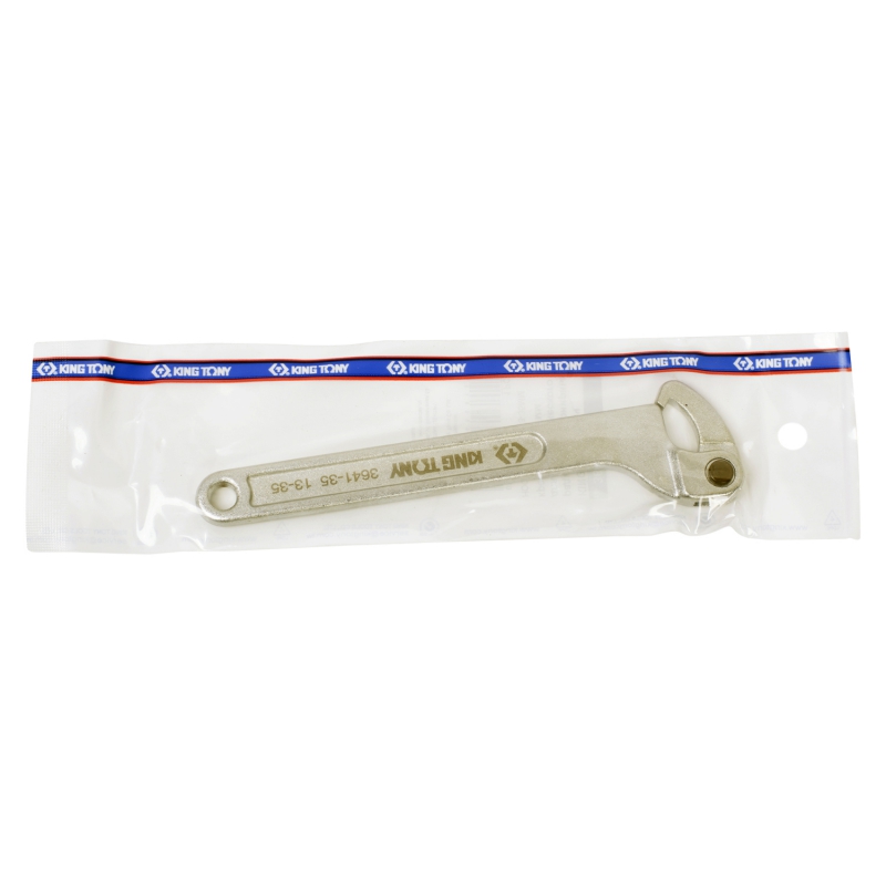 Функциональный радиусный ключ King Tony имеет подпружиненный шарнирный механизм, удобный в работе. Инструментальная сталь с добавлением хрома и ванадия, использованная при изготовлении инструмента, придает прочность и невосприимчивость к нагрузкам. Захват выпуклой формы подойдет для крепежа без огранки, размером 13-35 мм.