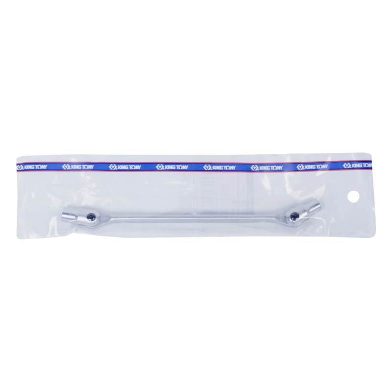 Торцевой ключ King Tony используется для работы с гайками в труднодоступных местах. Основное назначение – обслуживание автомобилей. Представленная модель имеет 12-гранный профиль. Торцевые головки снабжены шарнирами, которые поворачиваются на 180 градусов. Инструмент выполнен из прочного хромованадиевого сплава, прошедшего в процессе изготовления термическую обработку. Имеет антикоррозионное покрытие.