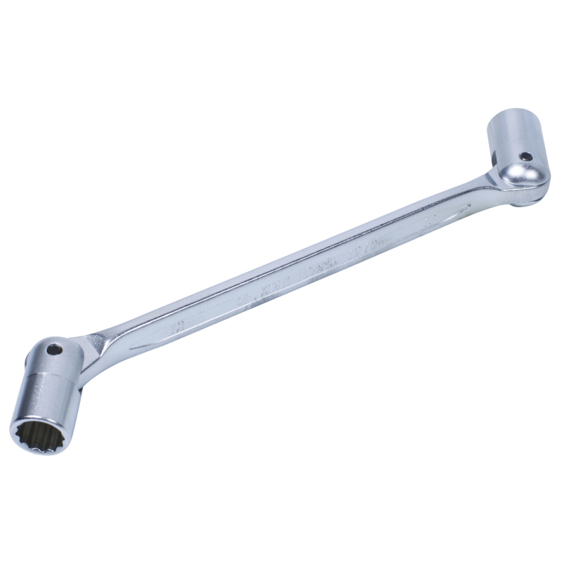Торцевой ключ King Tony оснащен специальными шарнирами, ход которых составляет 18 градусов. Это облегчает работу с гайками в труднодоступных местах. Данная модель обладает эргономичной формой для комфортного использования. Высокопрочная сталь, из которой на сделана, закалена по методу горячей ковки и термической обработки. Инструмент выдерживает интенсивное механическое воздействие. Хромированное покрытие делает его устойчивым к образованию коррозии. Имеет 12-гранный профиль.