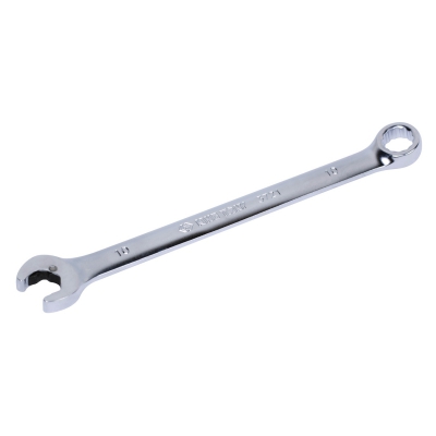 Комбинированный ключ с двенадцатигранной накидной частью. Рожковый захват оснащен трещоточным механизмом. Угол изгиба зева в 15 градусов относительно корпуса позволяет работать с труднодоступными резьбовыми креплениями. Способен выдержать повышенные нагрузки.