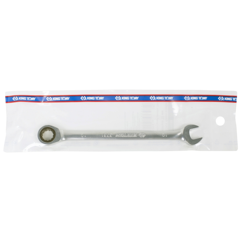 Трещоточный комбинированный ключ King Tony изготовлен из новейшей технологии с применением метода горячей ковки и последующей термообработки. Закаленная сталь устойчива к деформации и износу. Хромированное покрытие защищает инструмент от появления коррозии. Данная модель широко используется в автосервисах и на производстве. Изгиб рожковой части под углом 15 градусов позволяет работать с труднодоступным крепежом.