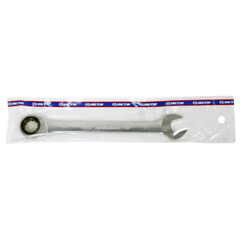 Трещоточный комбинированный ключ King Tony используется для откручивания труднодоступных болтов и гаек. Применяется на производстве и в быту для ремонта различной техники и автотранспорта. Закаленная сталь, из которой выполнена данная модель, обладает высоким запасом прочности. Хромированное покрытие предотвращает появление коррозии. Для большого удобства рожковая часть имеет изгиб под углом 15 градусов. Также инструмент оснащен 12-гранным профилем и трещоткой.