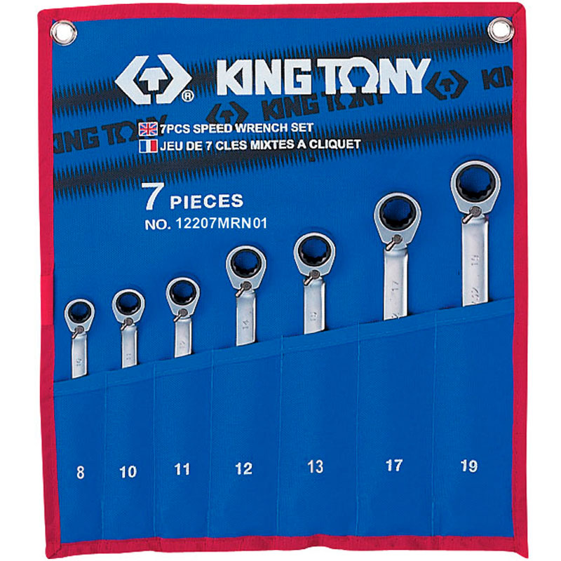 Набор комбинированных трещоточных ключей King Tony, 8-19 мм, чехол из теторона, 7 предметов