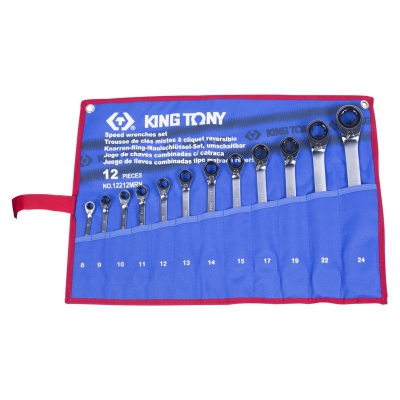 Набор комбинированных трещоточных ключей King Tony, 8-24 мм, чехол из теторона, 12 предметов