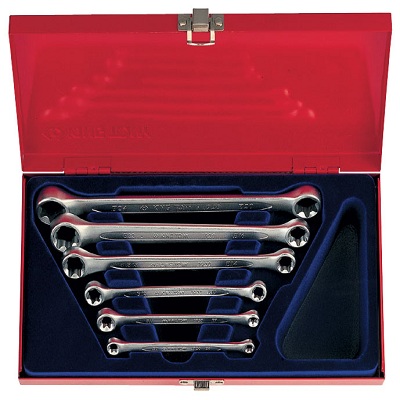 Набор накидных ключей производителя King Tony. 6 предметов с двенадцатигранной формой профиля. Применяется в работе с резьбовыми соединениями. Возможно применение в быту или в ремонтных мастерских. Подходит для 6-гранных и 12-гранных болтов или гаек. Инструменты выполнены из хромованадиевой стали и наделены повышенной прочностью. Кейс из пластика для хранения и переноски.
