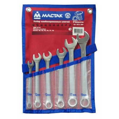 Набор комбинированных ключей МАСТАК, 10-19 мм, 6 предметов