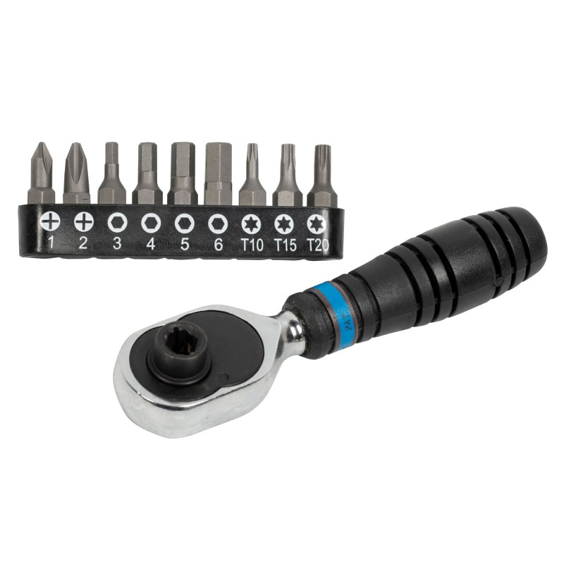 - Вставки разного размера (9 шт.) и флажковый трещоточный механизм в комплекте;
