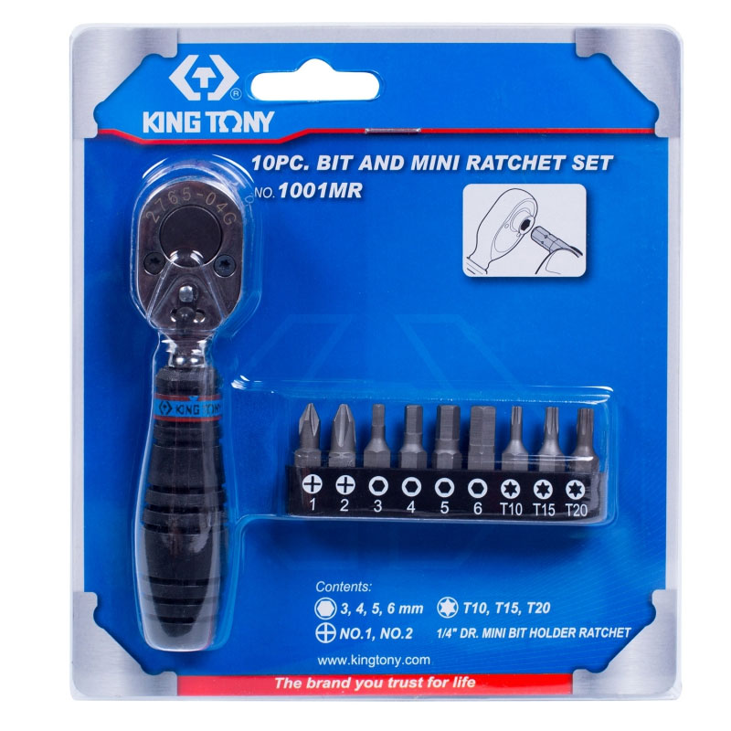 Набор вставок (бит) с трещоткой King Tony 1/4, TORX, HEX, PH, 10 предметов