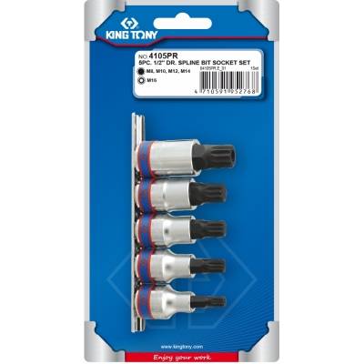 Набор торцевых насадок King Tony 1/2, SPLINE, М8-М16, 5 предметов
