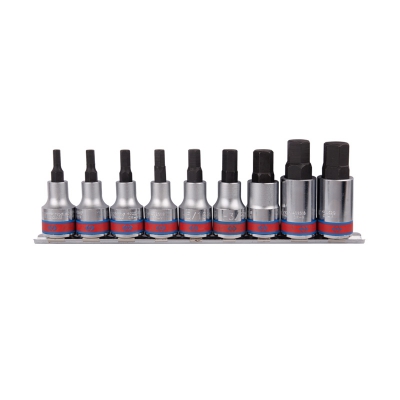 Набор торцевых насадок King Tony с профилем HEX (посадочный квадрат 1/2″, размер 3/16″-5/8″) состоит из 9 предметов, предназначенных для применения в сочетании с трещоткой, шуруповёртом, дрелью или другим инструментом. Назначение изделий - закрутка и снятие резьбовых соединений с шестигранным профилем. Особенностью данного набора является обозначения размера в дюймах, что характерно для механизмов американского производства.