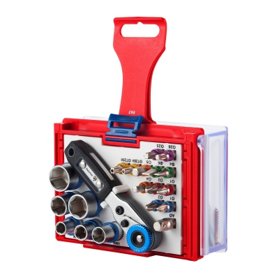 - Широкая комплектация: биты различных профилей и размеров, торцевые головки, адаптер, ключ-трещотка, многофункциональный кейс-трансформер для удобного ношения и хранения комплекта.