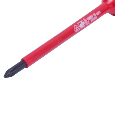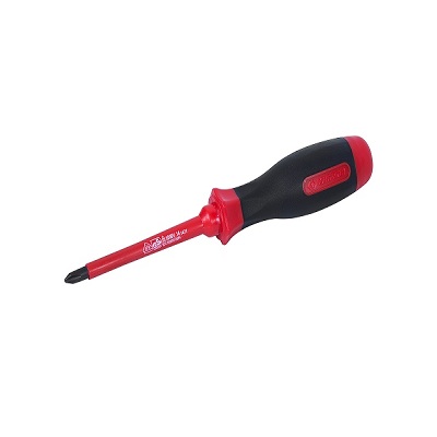 Крестообразная отвертка с профилем PH1. Изоляционное покрытие позволяет работать с резьбовыми соединениями, находящимися под напряжением до 1000 вольт. Прочный стержень из стали устойчив к повышенным нагрузкам.