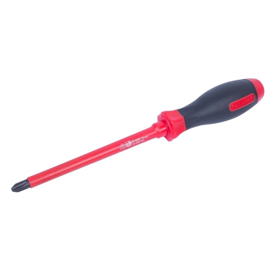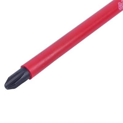 Крестовая отвертка со шлицем PH3. Обладает диэлектрическими свойствами. Изоляционное покрытие позволяет работать с креплениями под напряжением до 1000 вольт. Стержень из стали наделен повышенной прочностью. Возможно применение в быту или на СТО.