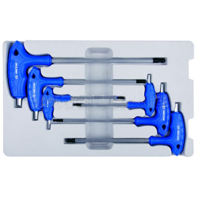 Набор King Tony включает в себя 6 инструментов с размером профиля от 3 до 8 мм, Г-образные шестигранники применяются для затяжки и раскрутки крепёжных элементов с внутренним профилем. Благодаря шарообразному наконечнику, можно легко работать под углом с утопленными крепежами в ограниченном пространстве, а термообработка рабочих поверхностей увеличивает износостойкость.