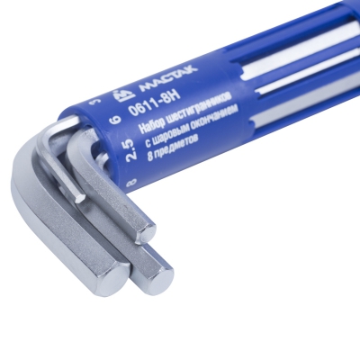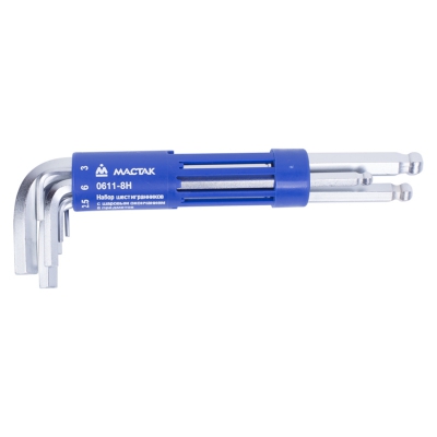Комплект угловых ключей МАСТАК (рабочий размер 2-10 мм) служит для установки и снятия крепёжных соединений в труднодоступных местах, двусторонняя конфигурация с наконечником шарообразной формы позволяет работать с деталями под углом, а удобный держатель в виде рукоятки облегчает хранение и эксплуатацию набора. Может применяться, как для мелких бытовых работ, так и в производственных условиях.