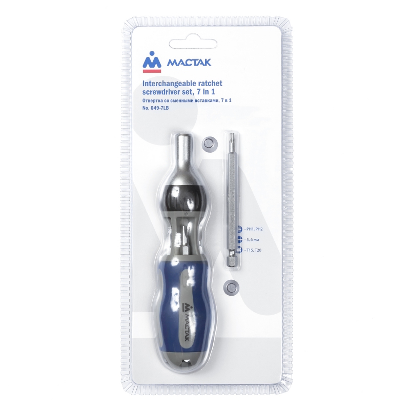 Отвёртка со сменными вставками, 7 в 1, МАСТАК