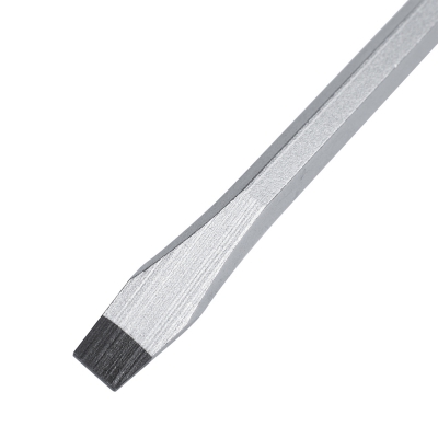 Плоский профиль для работы со шлицевыми креплениями. Рукоять из термопластичной резины и полипропилена надежно и крепко лежит в руке, исключая скольжение. Шестигранный профиль у основания размером 10 мм. Возможно применение при сложных работах совместно с гаечным ключом. Применяется в быту или в мастерских.