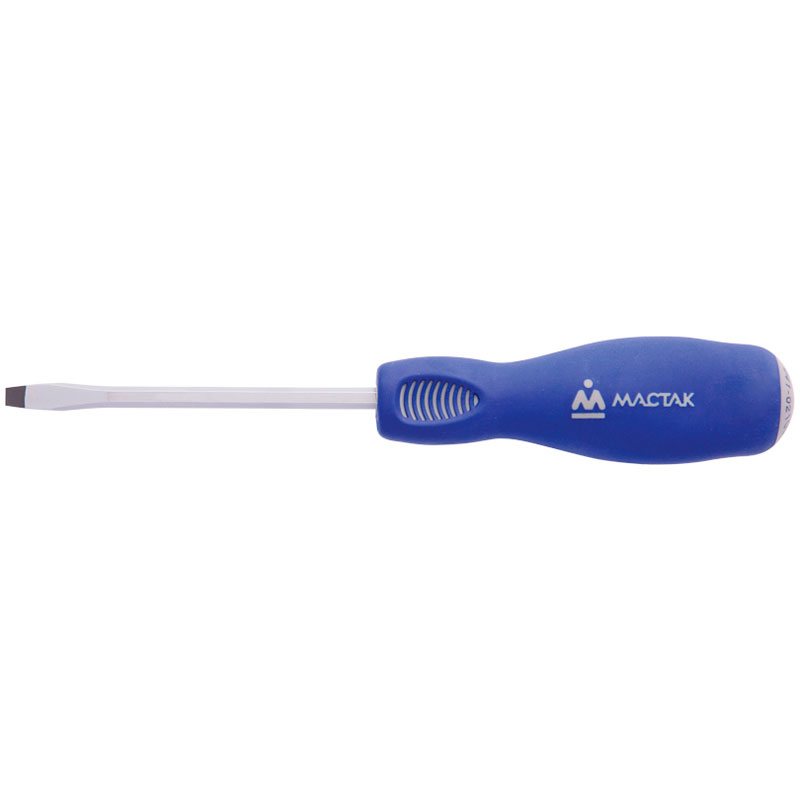 Шлицевая отвертка Мастак используется для работы с крепежом, имеющим внутренний плоский профиль. Не заменима в быту и в автомастерской. Стальной шестигранный стержень устойчив к деформации под нагрузкой. Характеризуется высокой износостойкостью и долговечностью. Двухкомпонентная эргономичная рукоятка имеет удобный захват и не выскальзывает из рук.